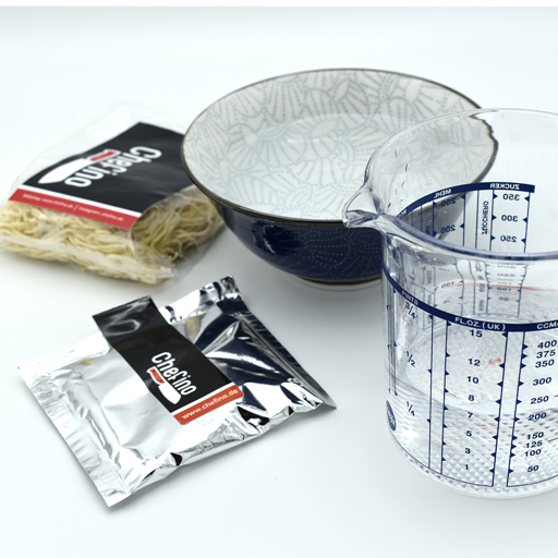 The preparation is very simple. Heat approx. 250 ml of water. Open the bag, add the content to the water, stir, add ramen noodles - done!